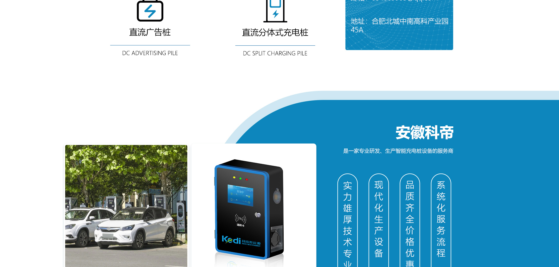 安徽科帝新能源科技有限公司坐落于安徽省會-合肥,是一家研發(fā)、生產智能充電樁設備,汽車充電站后臺監(jiān)控管理系統和生產高壓開關設備的企業.由專門的研發(fā)團隊、管理團隊按照現代化企業制度規(guī)范設立的有限責任公司。致力于為能源智能、安全的應用和節(jié)能減排提供整體的技術與產品解決方案。科帝集研發(fā)、設計、生產、銷售以及服務于一體,在電動汽車充電方案,充電設施建設和城市配電方面擁有廣泛的技術研究及經驗積累,為客戶提供安全、智能的充電設備及充電運營站建設一體化解決方案。并堅持以人為本、質量為先、顧客至上、不斷創(chuàng)新”的企業理念,為能源行業的發(fā)展、節(jié)能減排做出重大的貢獻。公司擁有豐富的產品種類,目前科帝已研發(fā)生產了三十多種產品,充電設備有直流一體式充電樁、直流分體式充電樁、直流廣告樁、交流廣告樁、廣告一體樁、壁掛交直流樁;等多種充電設備;每一款產品都是精心打造,力求為客戶提供優(yōu)越的用戶體驗。展望未來科帝將通過持續(xù)的自...